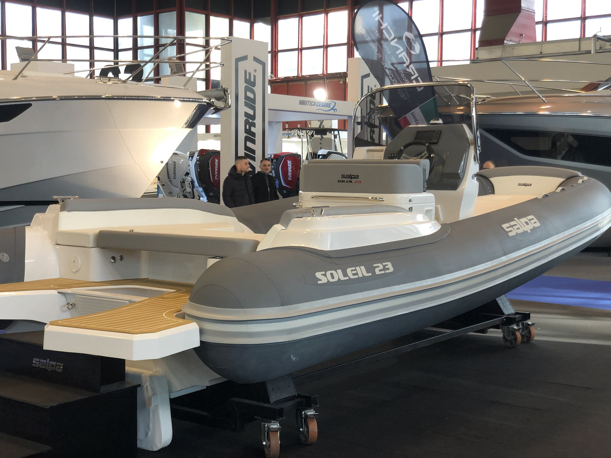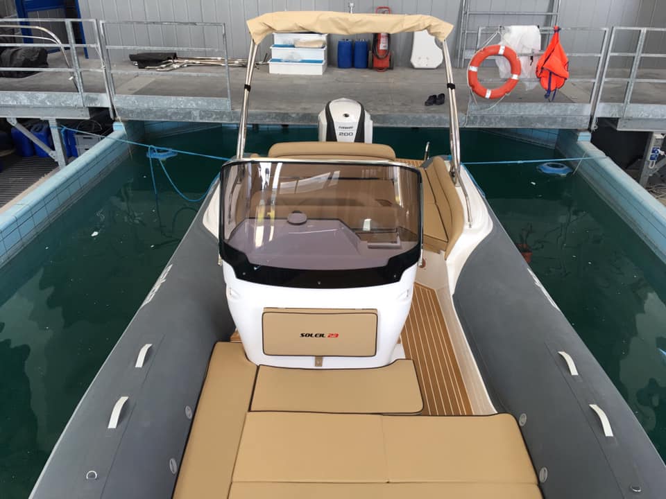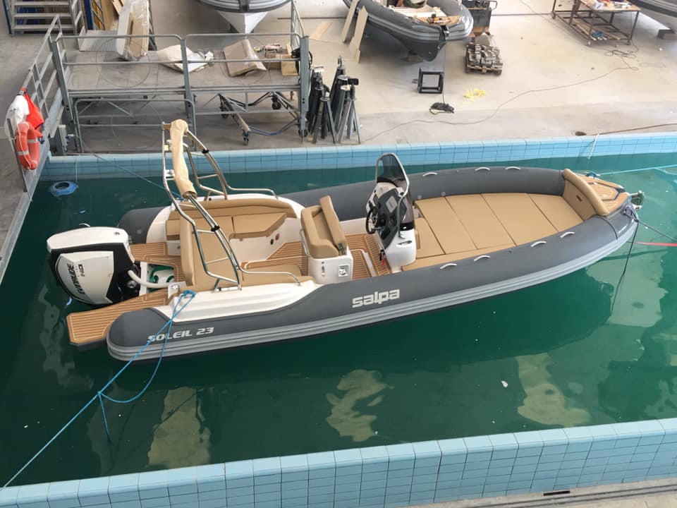 Elegáns és eredeti! Képes ötvözni az optimális teljesítményt a fedélzeti élet kényelmével. A teljesen új projekt ellenére az azt kidolgozó műszaki személyzet nem habozott az innovatív megoldásokat választani a hagyományos kialakítások mellett. A Salpa Soleil 23 fedélzetének elrendezése követi a hagyományokat a hely elosztása tekintetében, de ami szembetűnő, az a képesség, ahogy beillesztik a hatalmas tereket, a felszereléssel együtt, ebbe a hétméteres gumicsónakba.